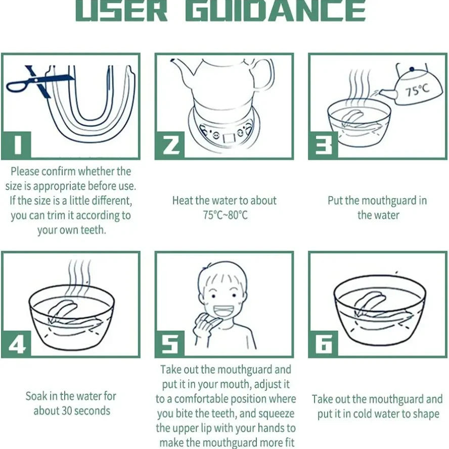 • Matériau de haute qualité : Fabriqué en EVA, un matériau reconnu pour sa durabilité et sa capacité à absorber les chocs, ce protège-dents est léger, confortable et résistant à l'usure. L'EVA offre également une flexibilité qui assure un ajustement sur mesure et un confort accru tout au long de l'utilisation.