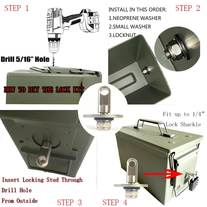 Kit de Verrouillage pour Boîte à Munitions 50 Cal – Accessoires de Coffre Secret Sécurisé en Acier | Aolamegs