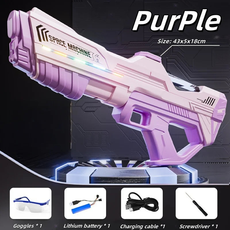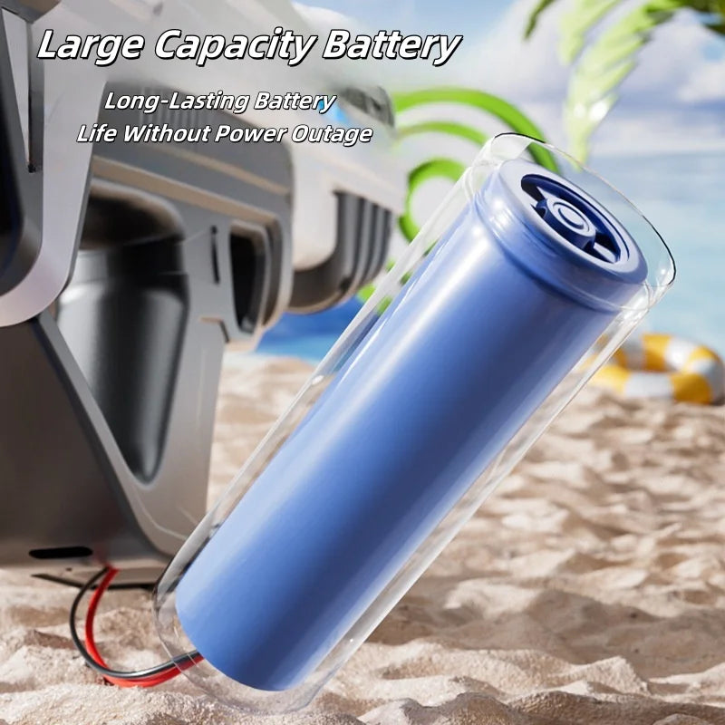 Ce pistolet à eau électrique intègre une technologie avancée à impulsions, permettant un tir continu fluide grâce à sa fonction d’absorption automatique de l’eau, garantissant une pression élevée et constante, idéale pour des affrontements en extérieur dynamiques. Conçu en plastique ABS de haute qualité, il allie robustesse et légèreté, tandis que sa batterie au lithium assure une autonomie prolongée pour des heures de jeu ininterrompu. Les effets lumineux subtils enrichissent l’expérience visuelle, conférant une touche moderne et captivante à ce jouet. Certifié CE, ce modèle unisexe s’adresse aux enfants de 3 à 12 ans, offrant un équilibre parfait entre sécurité, ergonomie et performance dans un design élégant et fonctionnel.