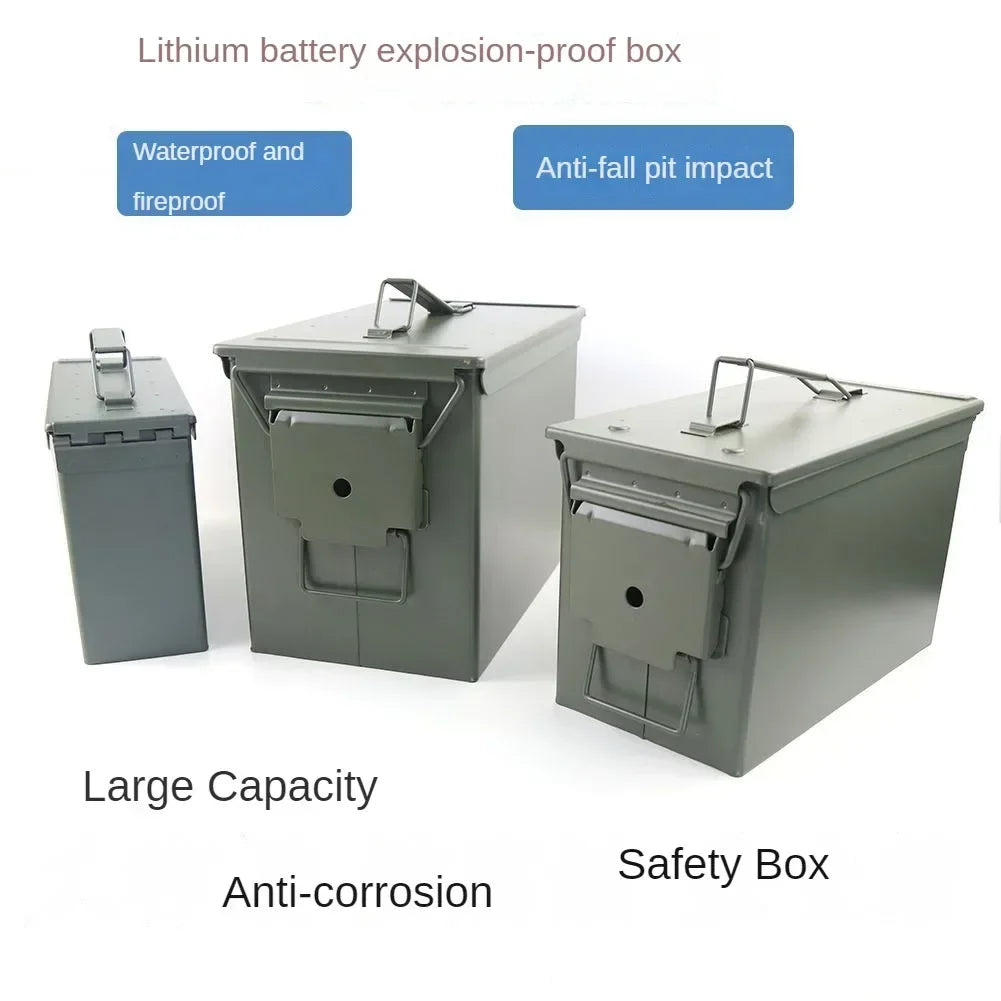 Boîte Métallique Sécurisée avec Verrou – Boîte de Rangement Anti-Explosion pour Batterie Lithium, Munitions et Outils
