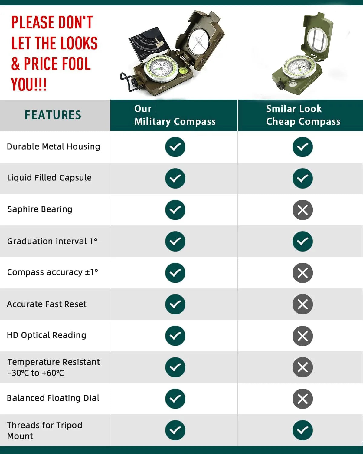 Boussole Professionnelle Haute Précision avec Inclinomètre – Outil de Navigation pour Camping, Randonnée et Survie