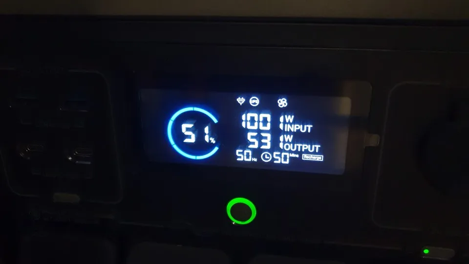 Il est arrivé à temps, a l'air très bien. Avec 76% de batterie, il fonctionne depuis toute la nuit avec le refroidisseur de 90 W branché et il reste encore de la charge. Je dois tester la charge solaire, ce qui m'intéresse le plus.