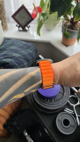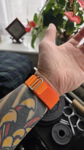 le bracelet est très extensible et confortable et s'adapte à la montre sans aucun problème. Beaucoup de possibilités de réglage, mais dommage que le bracelet orange ne soit pas disponible en métal noir au lieu de l'argenté.