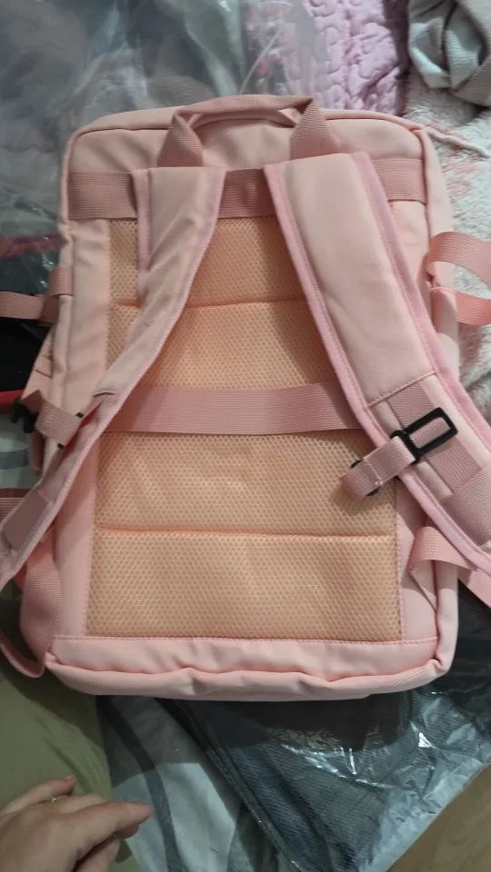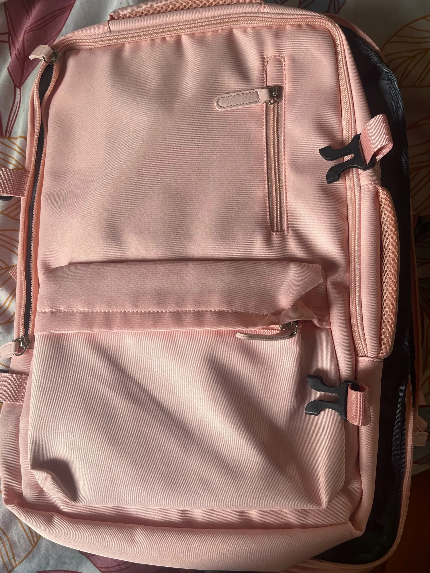 J'aime vraiment ce sac à dos de voyage. Livré rapidement avant la date. Tissu doux et il y a beaucoup de fermetures éclair pour mettre beaucoup de choses. Taille Vueling size. Il y a un autre fermeture éclair à étendre. Je recommande le vendeur