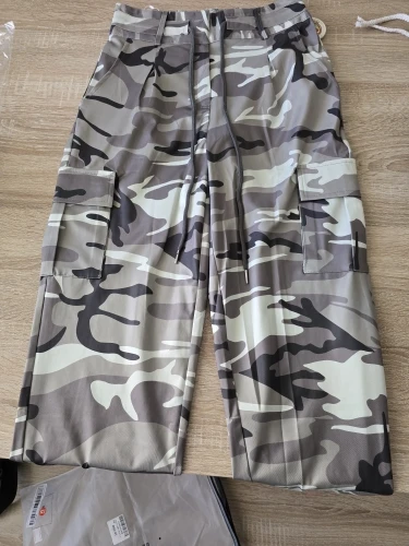 Adoptez un look tendance et fonctionnel avec ce pantalon cargo pour femme à imprimé camouflage. Doté d’une taille haute ajustable avec cordon de serrage et de plusieurs poches pratiques, il est parfait pour un style urbain ou une tenue casual chic.