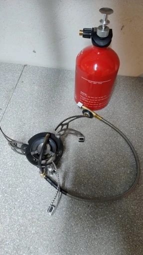 Je l'ai rempli avec de l'essence sans plomb, 98 octane. Au début, une grande flamme est apparue du brûleur et j'ai eu peur. Après un moment, la machine s'est chauffée et a commencé à brûler avec une flamme bleue égalitaire. bruyant mais fonctionne !