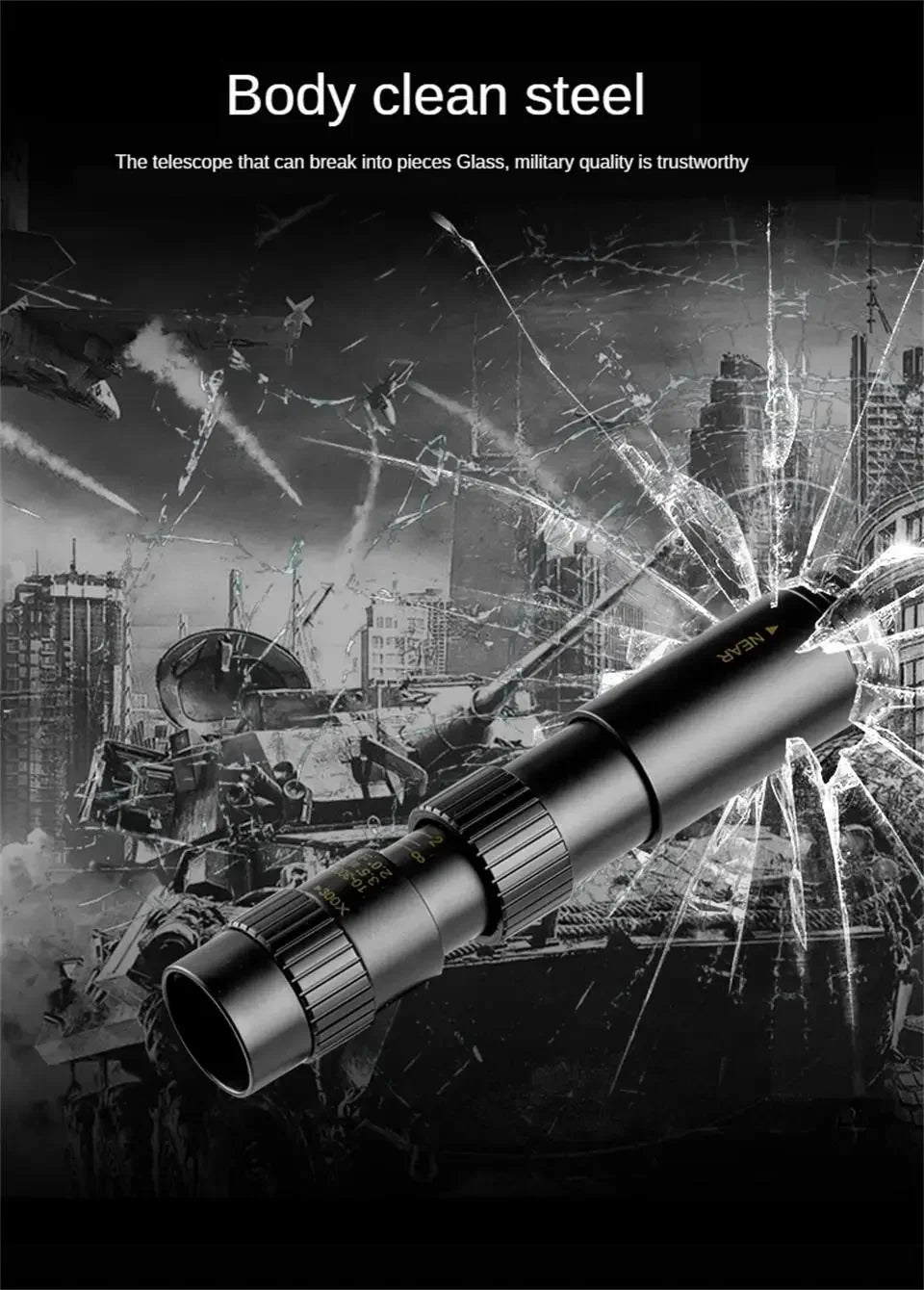 Matériaux robustes : Fabriqué à partir de plastique ABS et acier, ce monoculaire est conçu pour résister aux conditions extérieures les plus exigeantes, tout en restant léger et facile à transporter.