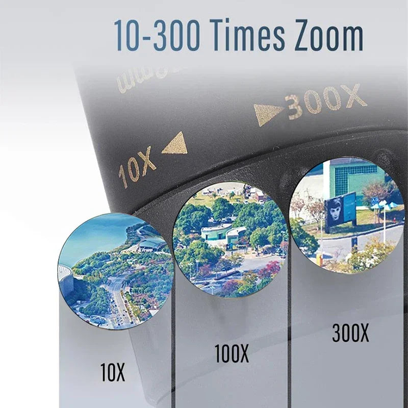 Zoom exceptionnel : Le grossissement réglable de 10x à 300x vous permet d’observer à des distances impressionnantes, avec un niveau de détail époustouflant.