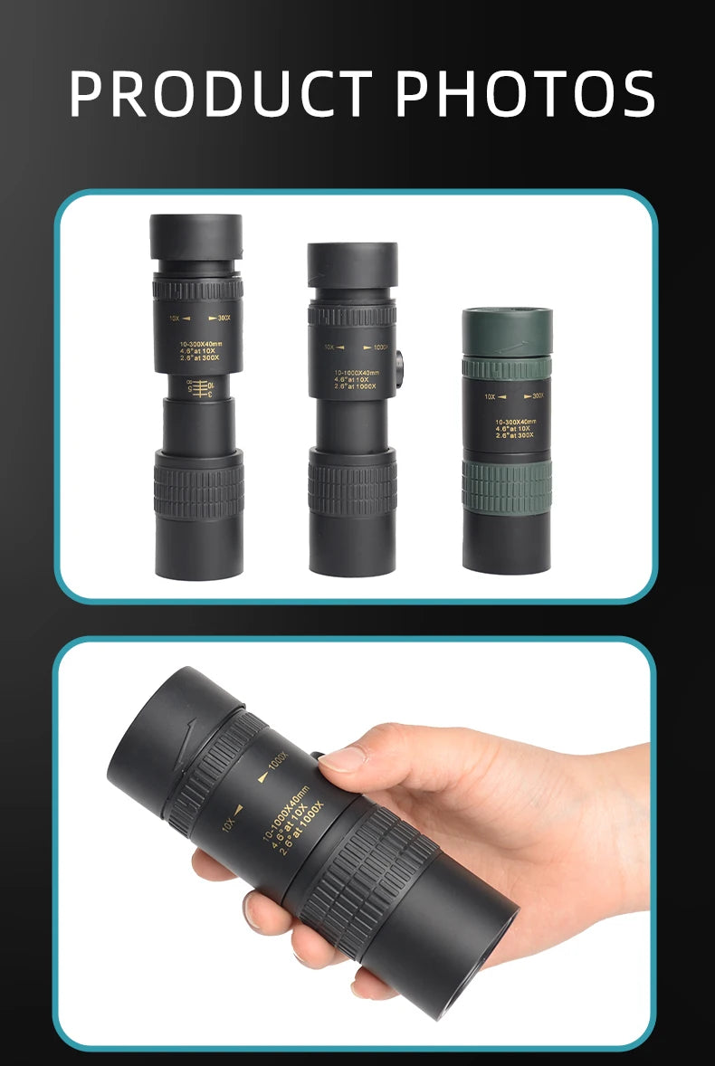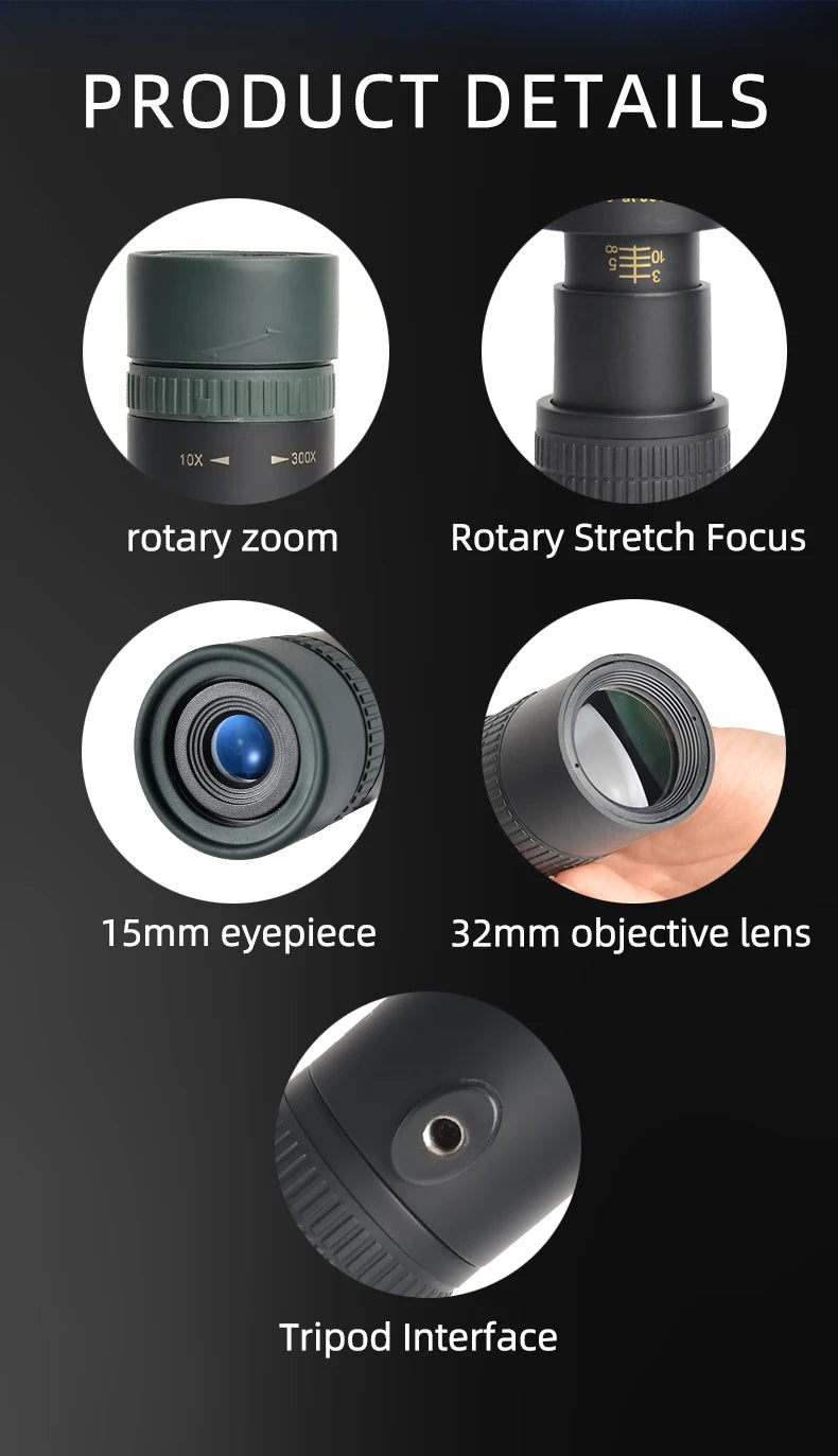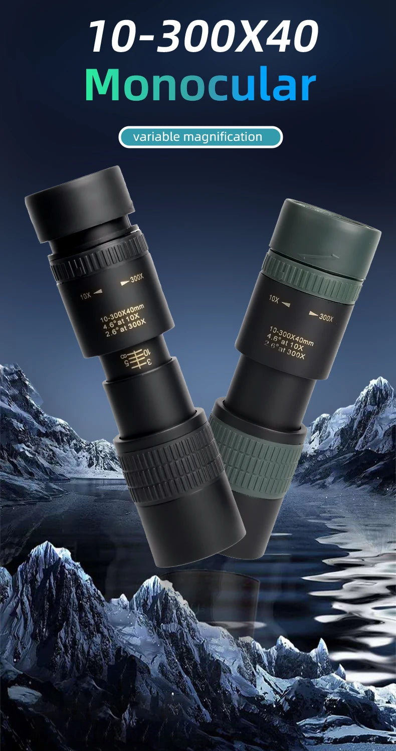 Longues-Vues Monoculaire 10-300x40 HD avec Prismes BAK4 – Télescope Portable Haute Définition pour Chasse, Camping et Observation à Longue Distance