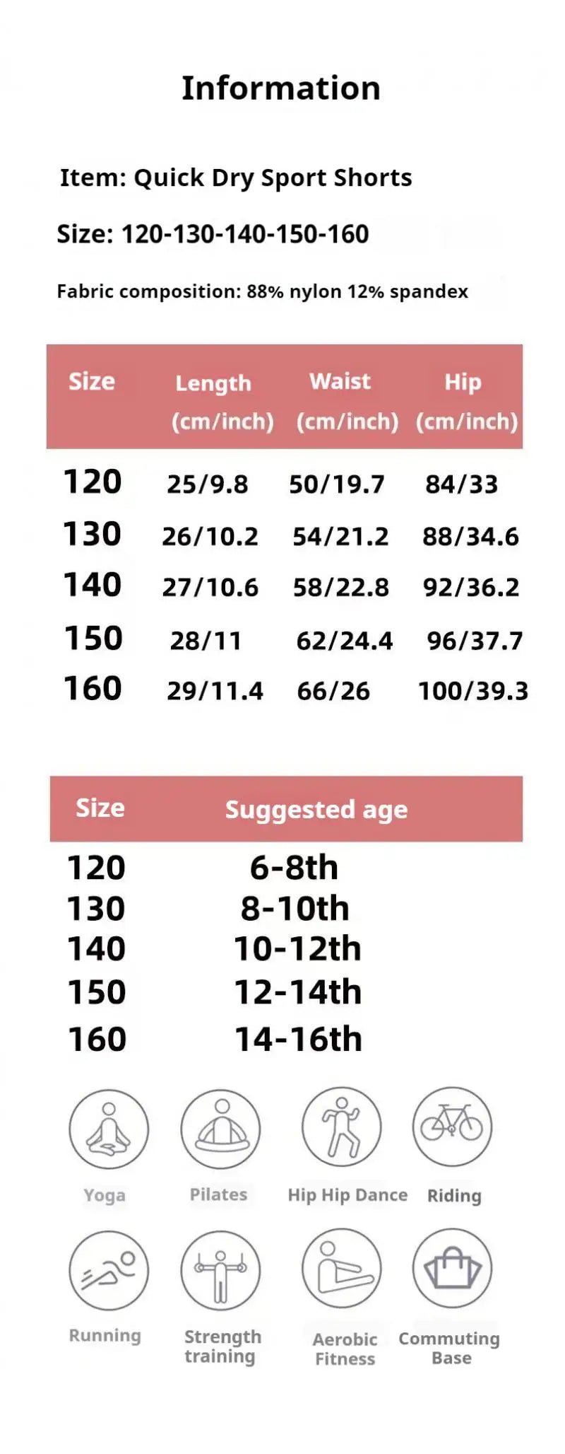 Ces shorts de sport pour filles, confectionnés en polyester à séchage rapide avec la technologie DRYTEC, allient légèreté et respirabilité pour un confort optimal durant l’effort. Leur coupe ample et la doublure en mesh anti-transparence garantissent une liberté de mouvement totale tout en assurant une couvrance discrète. La conception à double couche intérieure offre un maintien supplémentaire, tandis que le tissu lisse et infroissable préserve une allure soignée même après de nombreux lavages. Disponibles en tailles 120 à 160 cm, ces shorts sont parfaits pour le yoga, la course ou toute activité sportive.