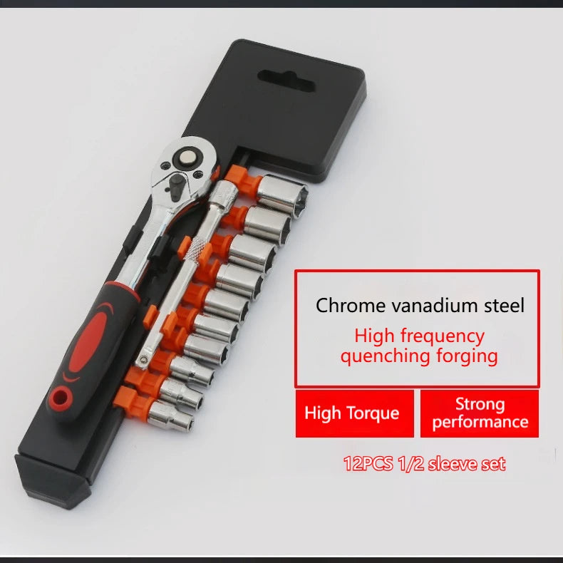 Jeu de 12 Douilles à Cliquet 1/4" – Acier Cr-V Haute Résistance