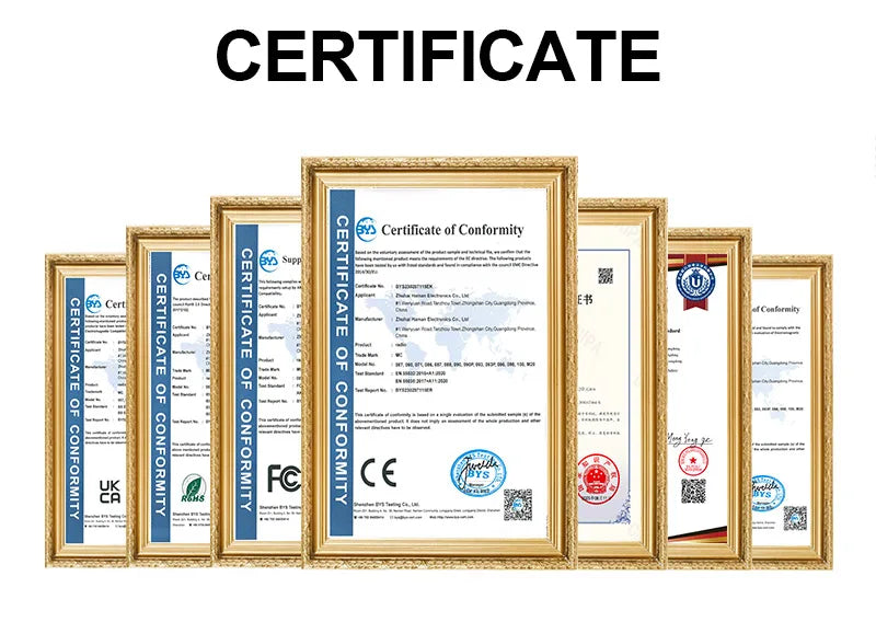 Certification : CE, FCC (garantissant la conformité aux normes de sécurité et de qualité)