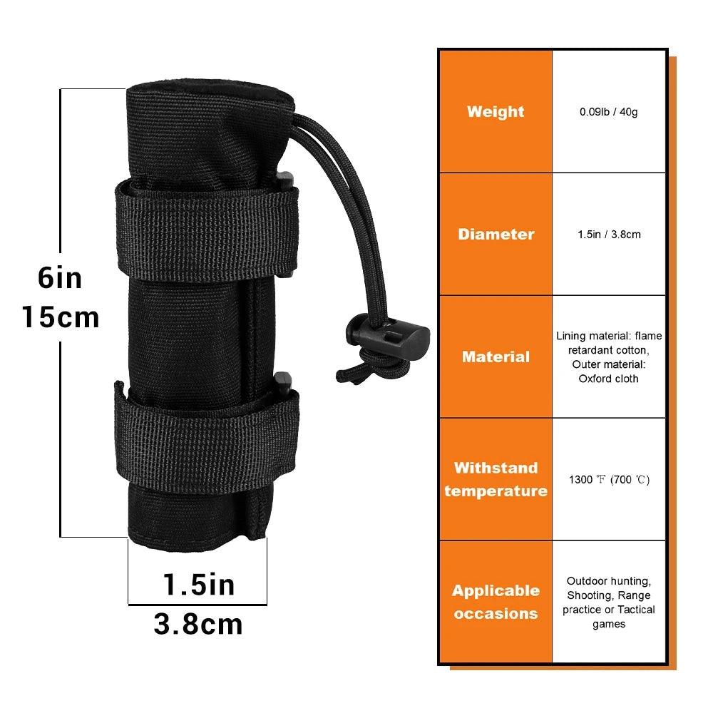 Cette housse tactique pour réducteur de son airsoft combine fonctionnalité et robustesse pour offrir une protection optimale lors de vos activités de tir ou de chasse. Sa doublure intérieure douce élimine efficacement le mirage provoqué par la chaleur rayonnante, améliorant ainsi la précision tout en protégeant vos mains et vos vêtements des brûlures causées par un silencieux chaud. Fabriquée en nylon 500D de haute qualité, cette housse est non seulement résistante à l’eau mais aussi à l’abrasion, garantissant une durabilité exceptionnelle même dans des conditions difficiles. Elle convient parfaitement aux silencieux d’un diamètre compris entre 1,3 et 1,75 pouces et d’une longueur maximale de 23 cm, avec plusieurs tailles disponibles pour un ajustement précis. Son design ingénieux intègre deux sangles ajustables qui assurent un maintien ferme et sécurisé, tandis que la double couche, incluant une gaine ignifuge, renforce la protection contre la chaleur extrême. Ce produit est un accessoire indispensable pour les passionnés d’airsoft souhaitant allier sécurité, performance et discrétion sur le terrain.