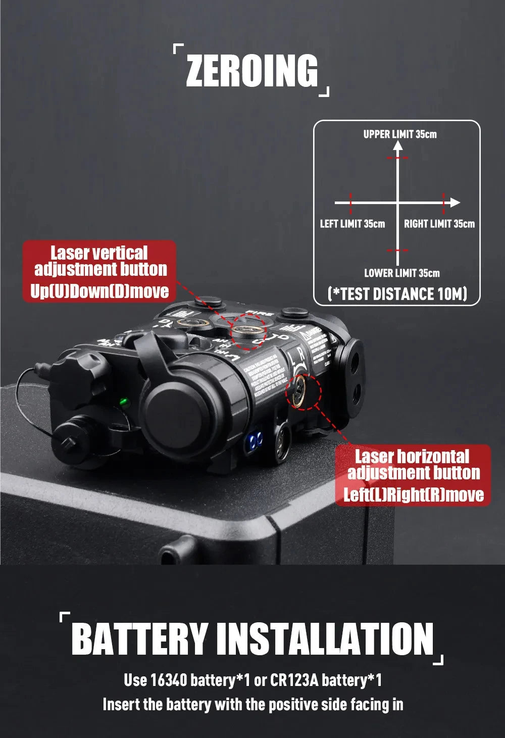 Ce pointeur laser tactique, conçu en alliage d'aluminium robuste, assure une grande durabilité et une résistance optimale aux conditions extérieures. Compatible avec un rail Picatinny de 20 mm, il s’installe facilement sur une large gamme d’armes. Alimenté par une batterie 16340 (3,7 V) ou CR123A (3 V) non incluse, il utilise des LED performantes pour offrir une visibilité claire et précise. Fabriqué en Chine continentale, ce modèle est exempt de produits chimiques nocifs, garantissant une utilisation sûre. Pour toute demande concernant d’autres coloris, notre service client reste à votre disposition afin de répondre à vos besoins spécifiques.