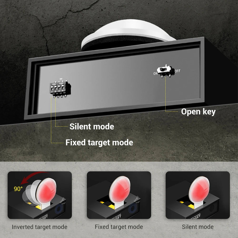 Améliorez votre entraînement au tir à sec avec cette cible laser électronique sophistiquée, conçue pour offrir un retour immédiat grâce à des signaux lumineux et sonores réactifs. Compatible avec tous les cartouches d’entraînement laser et dispositifs mag dry fire, incluant les lasers rouges, verts et infrarouges. Disponible en deux styles, la cible propose plusieurs modes d’entraînement : rotation à 90° avec chute et réinitialisation automatique, mode fixe avec activation sonore et lumineuse, ainsi qu’un mode silencieux. Fabriquée en plastique léger et alimentée par 4 piles AA (non incluses), elle se monte rapidement pour une utilisation intérieure sécurisée, idéale pour perfectionner la sécurité, la précision, le contrôle de la détente, l’alignement des organes de visée et la respiration, sans recourir à des munitions réelles. Un outil polyvalent et portable, indispensable pour tout tireur soucieux d’améliorer ses compétences avec rigueur et efficacité.