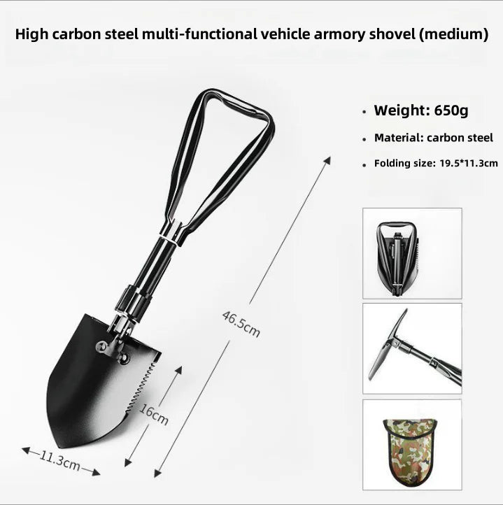 ⛏️ Pelle Pliante Multifonction – Acier au Carbone – Outil Tactique Compact pour Outdoor & Camping