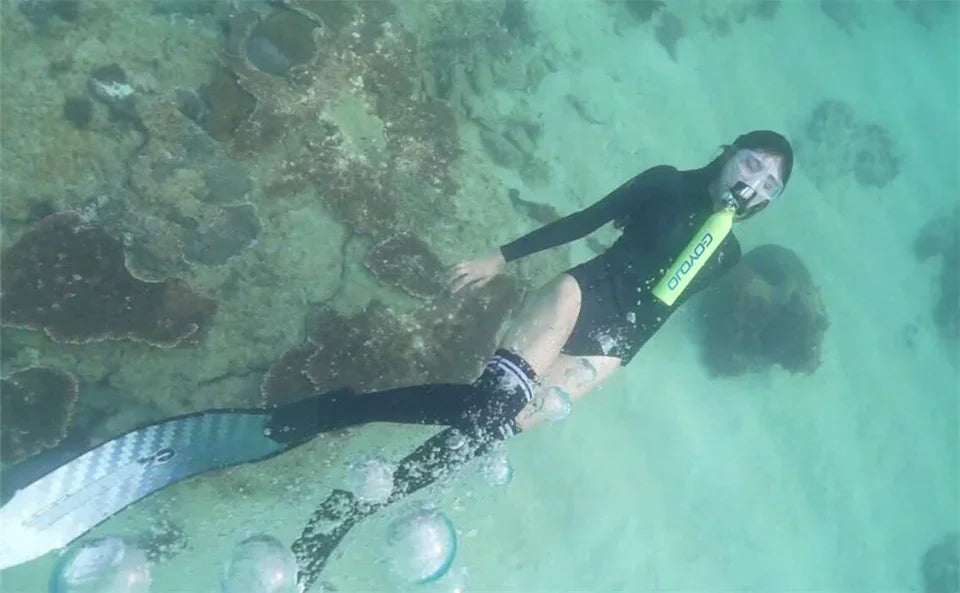 Cylindre d'oxygène portable : Permet une immersion de 5 à 10 minutes et peut être utilisé pour environ 66 bouffées d'air en surface (les performances peuvent varier en fonction de la profondeur sous l'eau).