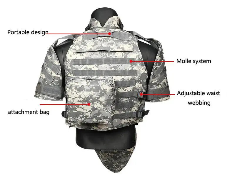 Le gilet tactique Molle OTV est conçu pour les opérations tactiques, airsoft, survie et entraînements militaires. Fabriqué en polyester robuste et nylon 600D, il offre durabilité et protection optimale avec un système MOLLE polyvalent. Le design inclus des protections balistiques pour le col, les épaules et le bas-ventre, assurant une couverture complète tout en restant léger et ajustable.