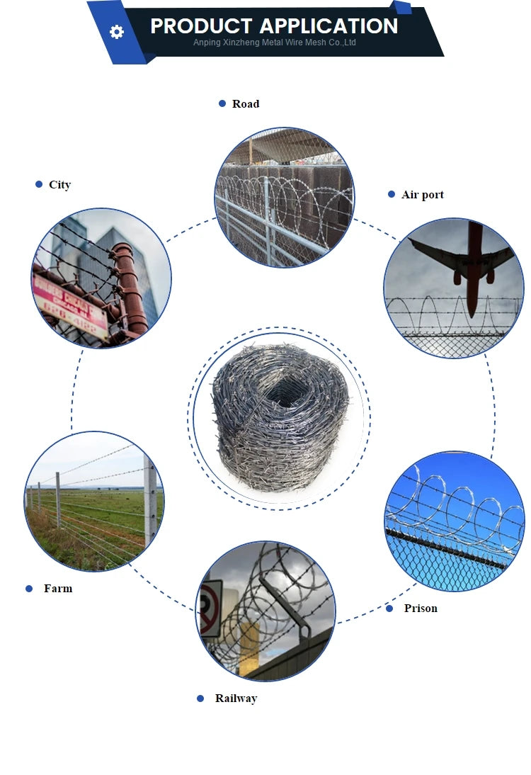 Le fil barbelé, grâce à sa conception robuste et efficace, est fréquemment utilisé pour assurer la sécurité des propriétés. En particulier, les terres agricoles, les entrepôts et les sites industriels bénéficient de sa capacité à dissuader les intrusions. Ce produit est constitué d'acier galvanisé à chaud, ce qui augmente sa durabilité et sa résistance aux éléments. Ainsi, il peut faire face à des conditions météorologiques variées, protégeant votre espace efficacement.