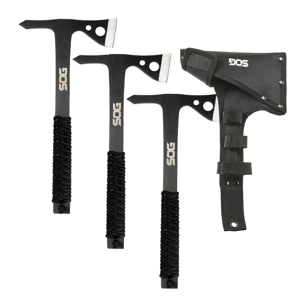 Lot de 3 Haches de Survie Polyvalentes SOG – Haches Monoblocs en Acier avec Étui, Outils à Main pour Camping et Bûcheronnage (Modèle TH1001-CP)
