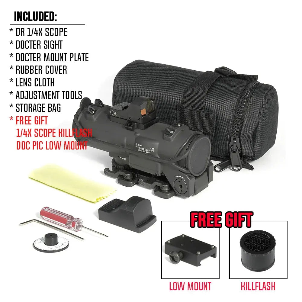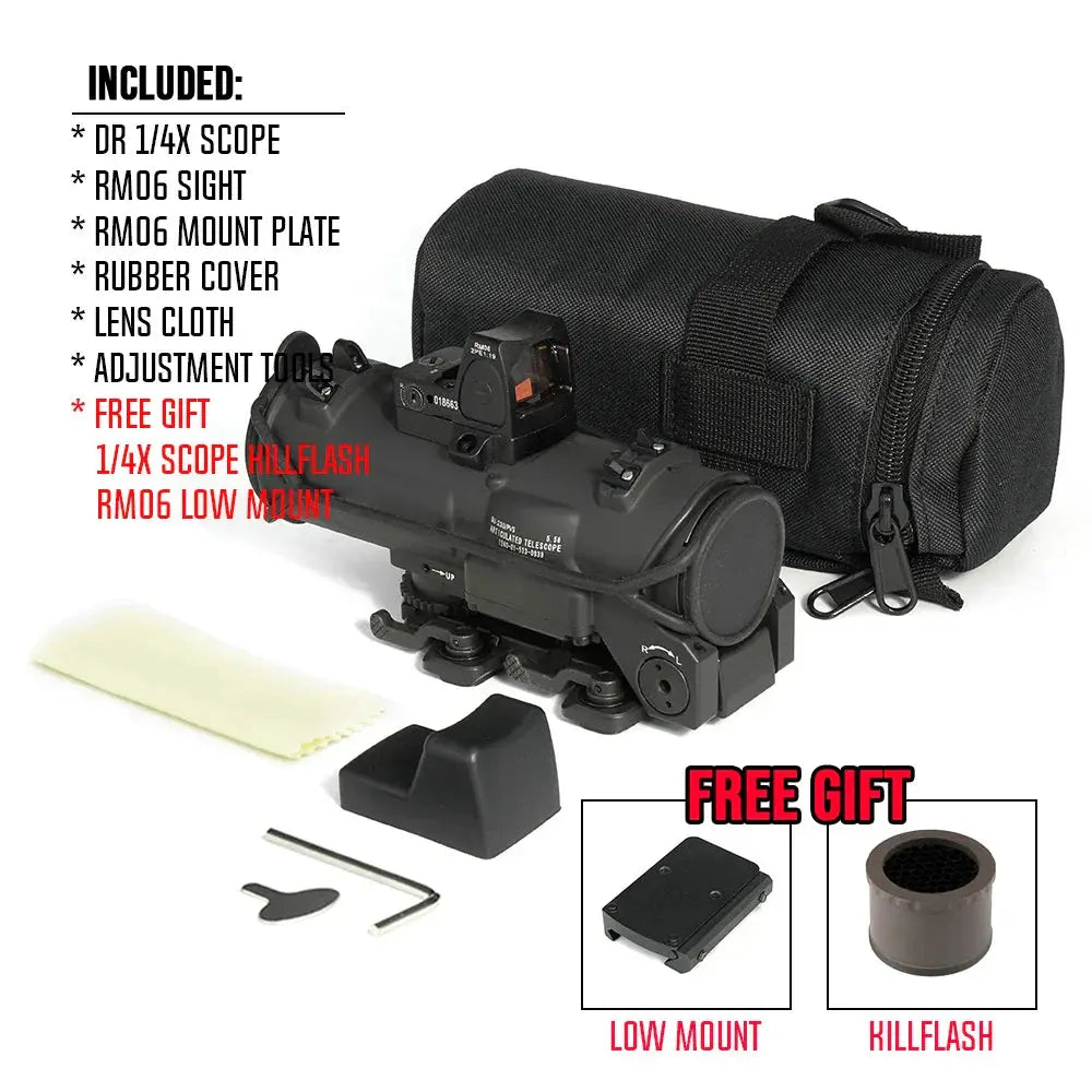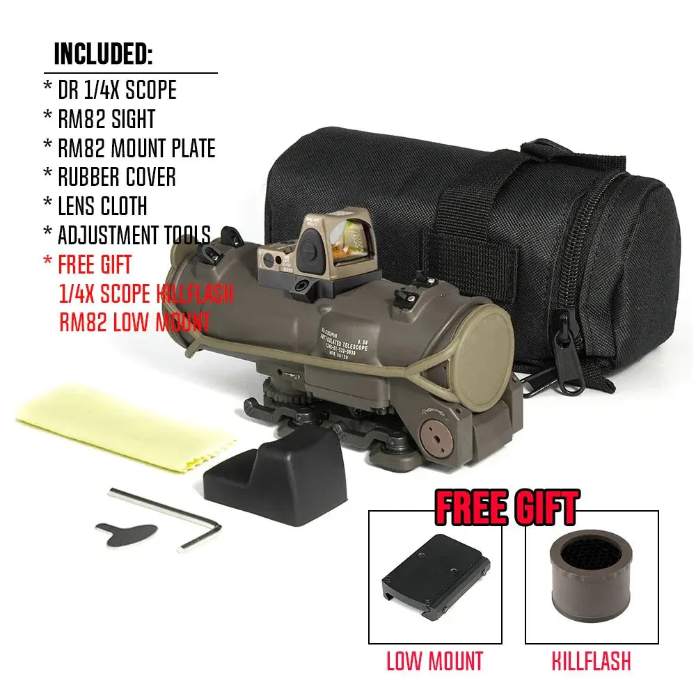 Viseur Tactique DR 1-4X GEN3 Double Fonction avec Réticule Rouge – Optique de Précision pour Fusil, Airsoft et Tir de Chasse