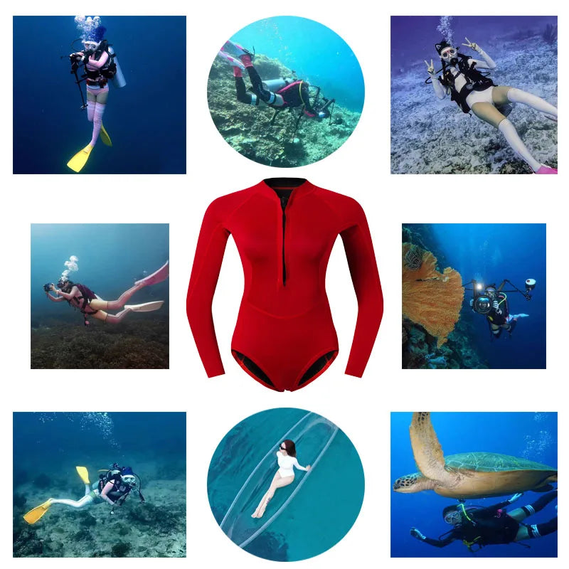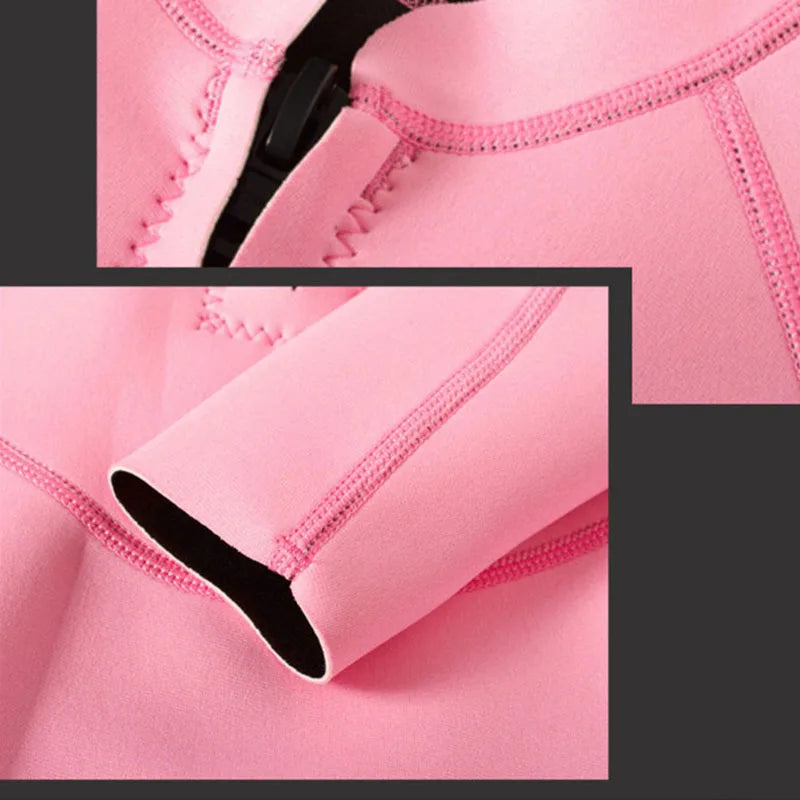 Combinaison Femme Néoprène 2 mm – Manches Longues Rose, Surf, Plongée, Snorkeling