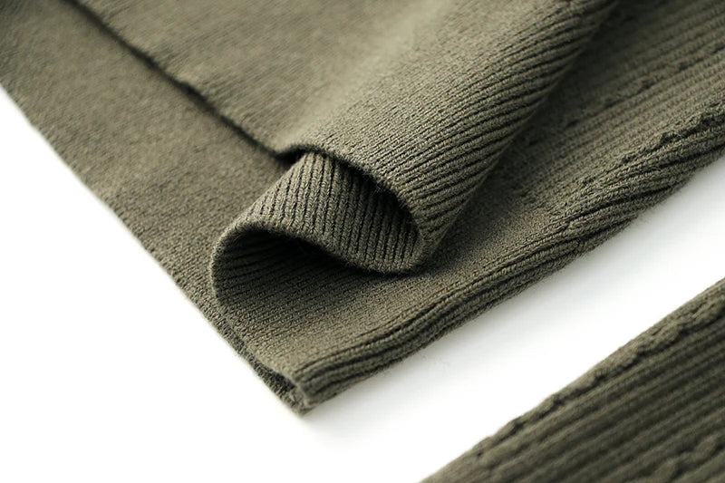 Pull en Laine Mélangée à Col Roulé Femme - Vert Armée, Épaules Padding, Casual, Tricoté pour l'Hiver